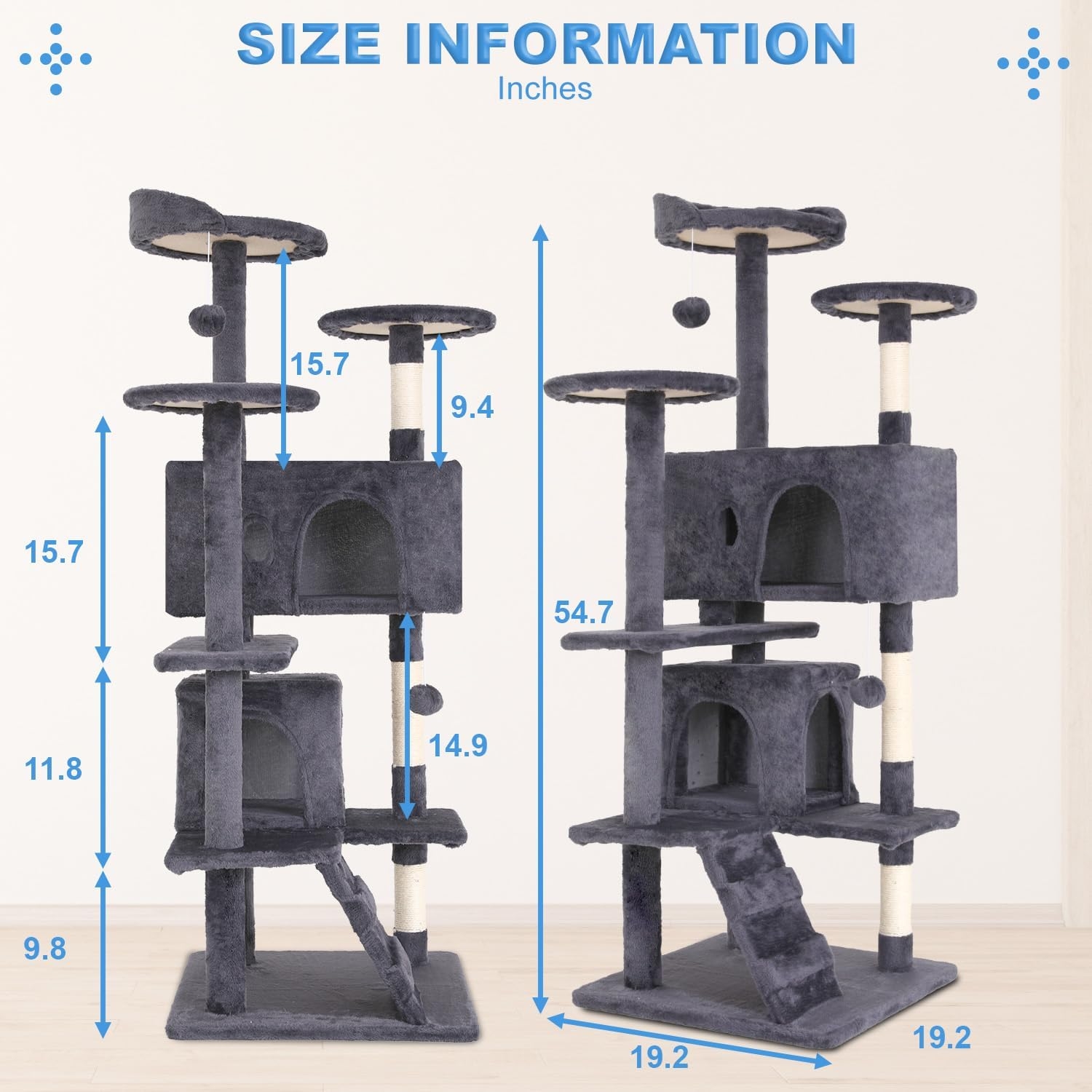 This cat tree built-in ladder can effectively satiate your cat’s natural climbing urges and give them additional possibilities and curiosity to exercise, preventing fat.