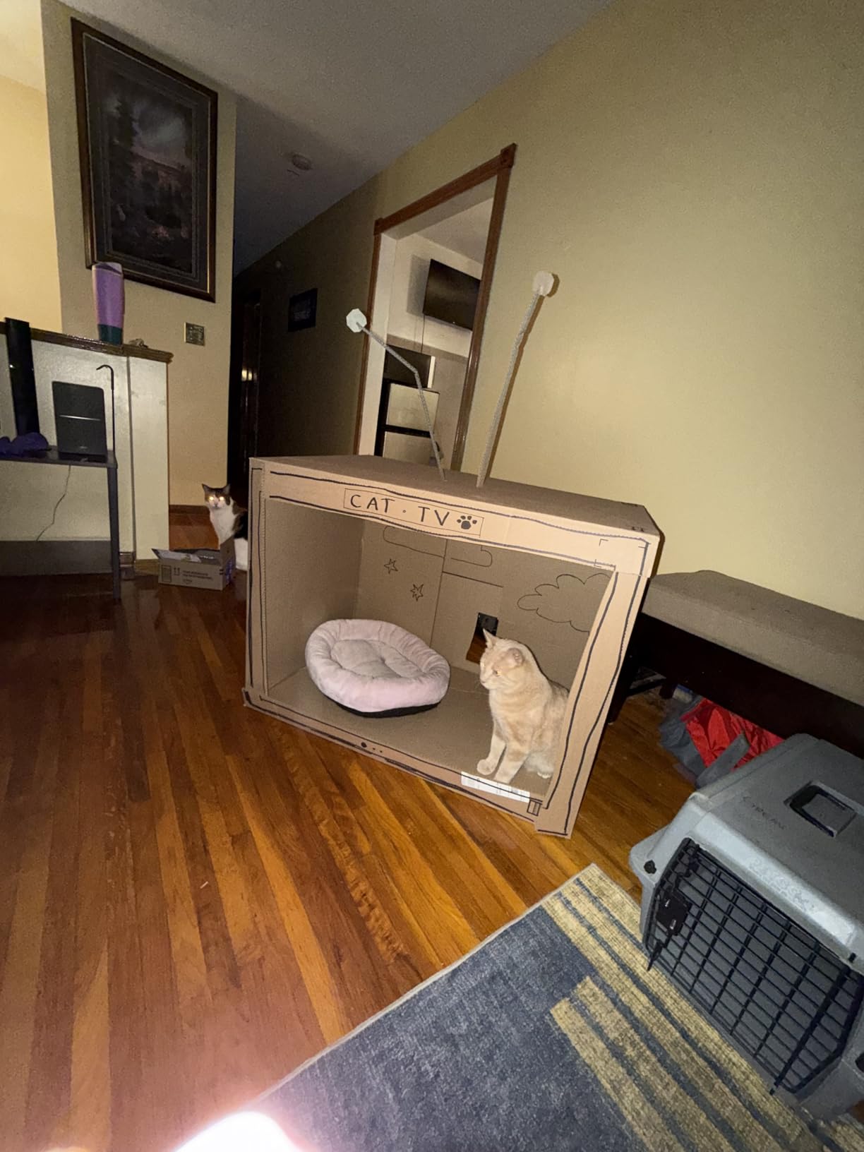 Update: mama purchased one of those "original" ones with a peekaboo hole. The entrance is smaller and overall, the feel of the unit is smaller - I can still fit easily but it will be tougher for Scouty. It came all folded up and looks like there was a cat fight! Of course we never fight, it's just what mama imagines it would look like 🙀😸