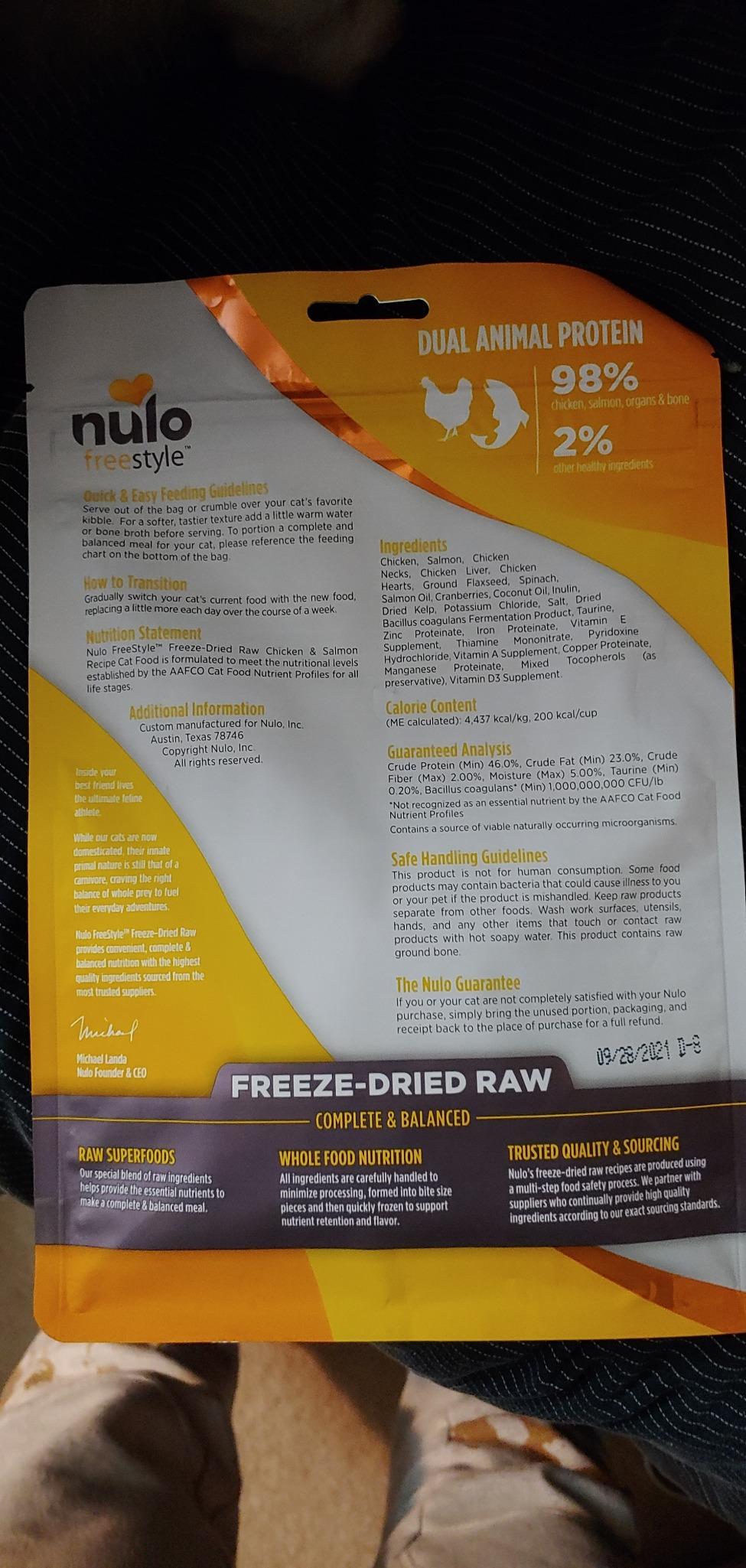 So I began searching Raw food. I found 2 different brands on Amazon and gave them a shot, compared, and fed them to my cats. Here are the Nulo Freestyle Freeze dried raw food results.
